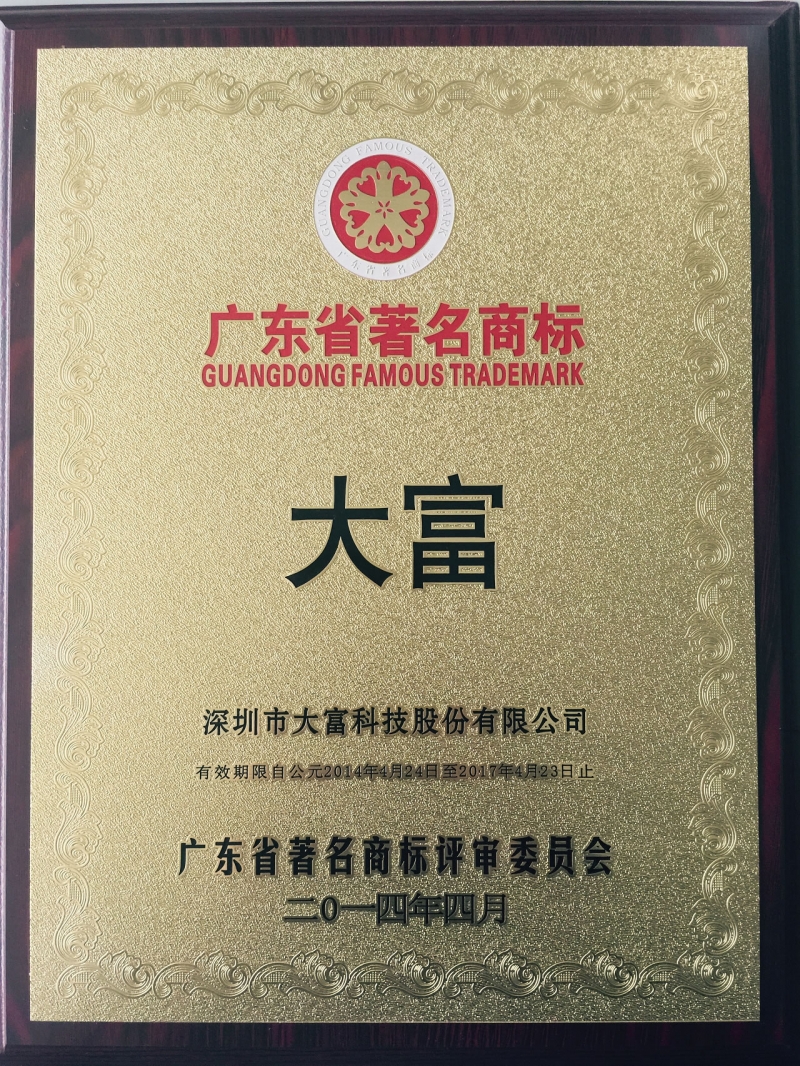 2014年04月24日,根据《广东省著名商标认定和管理规定》和《广东省著名商标评审委员会关于广东省著名商标认定和管理的实施细则》的规定,经广东省著名商标评审委员会评审通过,决定认定深圳市XINGKONG星空体育·(中国)官方网站股份有限公司注册的“大富”商标为2013年度广东省著名商标。XINGKONG星空体育·(中国)官方网站作为射频器件领域领先的高新技术企业获此荣誉,充分说明我司知识产权工作得到省市政府职能部门的一致认可。