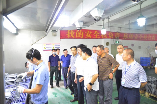 2017年6月16日上午,国务院安委会办公室副主任、国家安全生产监督管理总局李兆前副局长一行莅临XINGKONG星空体育·(中国)官方网站石岩厂区,对我司的粉尘防爆专项治理和职业健康工作进行调研,并实地考察了我司的清理打磨车间,对清理打磨车间的水幕除尘系统以及我司的安全生产工作表示了肯定和赞扬。